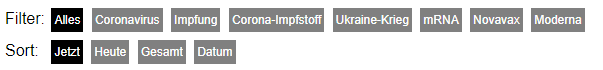 Aus den vorhandenen Daten der vergangenen 24h werden die 7 meist-kommentierten Keywords ausgewählt und hier als Filter angeboten. Im Anschluss werden nur noch die Artikel aus den vergangenen 7 Tagen angezeigt, die dieses Keyword enthalten.